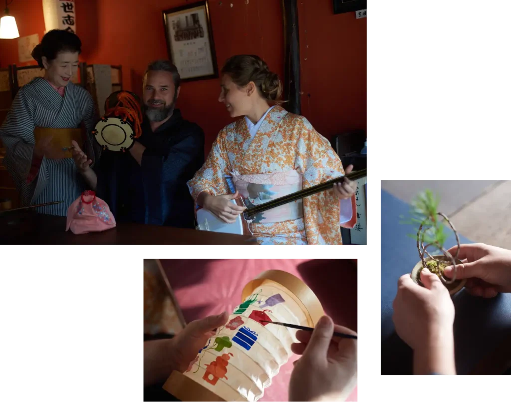 盆栽づくり、提灯づくり、和楽器。ツアー終了後も楽しめる魅力的なアクティビティがたくさんあります。