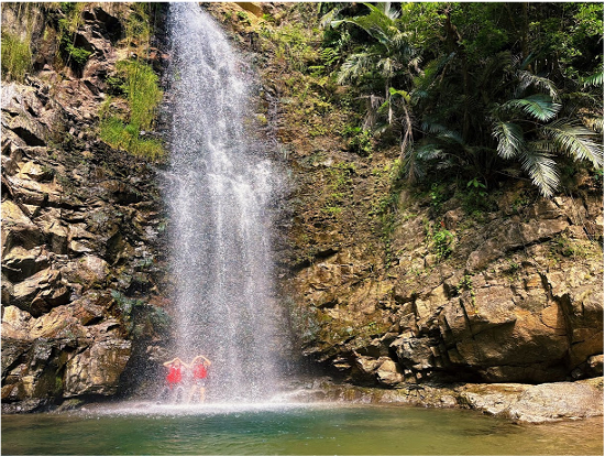 滝つぼで思いきり滝浴びを楽しみ、全身で自然の迫力を体感します。水しぶきと涼しさに包まれる、旅のハイライトです。
