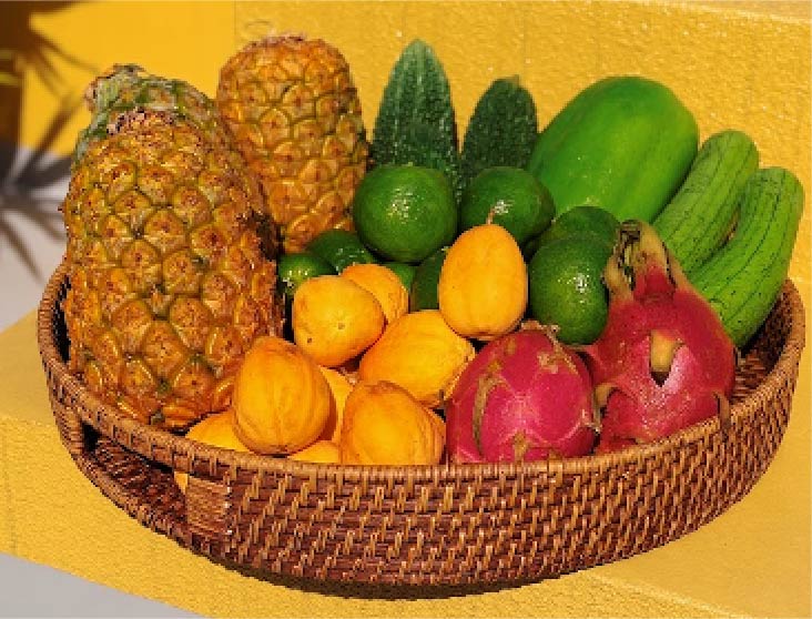 | ▼ファームで野菜・果物など収穫 沖縄料理づくり |