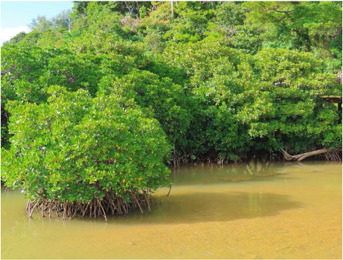 | ▼慶佐次湾のヒルギ林 |